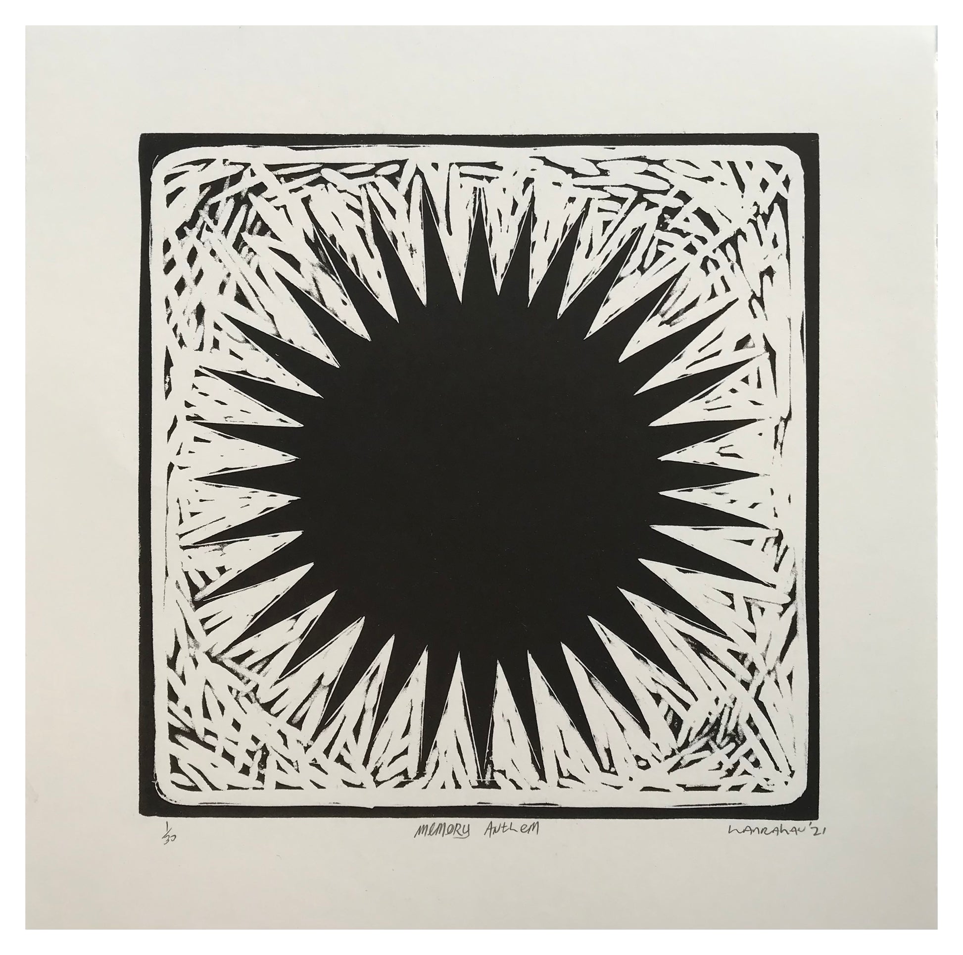 In the summer of 2021 Sean Hanrahan participated in IMMA’s A Radical Plot Residency, offering Hanrahan a platform to fully immerse himself in the histories, folklore, nature, and politics of a location that houses two organisations, IMMA & the OPW. Working and living within this dual function Hanrahan responded with Memory Anthem, a contemporary interpretation of a 32-point star motif inspired by the headstones in Bully's Acre. In Memory Anthem the star motif symbolises community, spirituality and the generational human cycle of activity of the IMMA/RHK site. An impression taken from a headstone was adapted for a print which was then represented as a handmade flag for a larger project presented on the west avenue of the site. Inspired by this evolving experience of the site and to celebrate IMMA30, Thirty years of IMMA, IMMA has commissioned 30 of these prints as a limited edition.