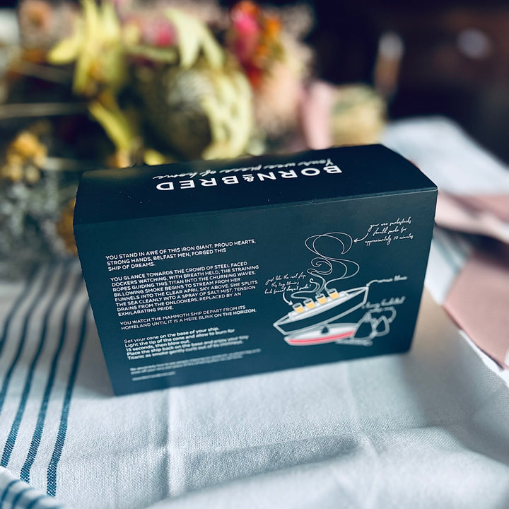 Set your cone on the base of your ship. Light the tip of the cone and allow to burn for 15 seconds, then gently blow out. Place the ship back on the base and enjoy your tiny Titanic as smoke gently curls out of its chimneys.