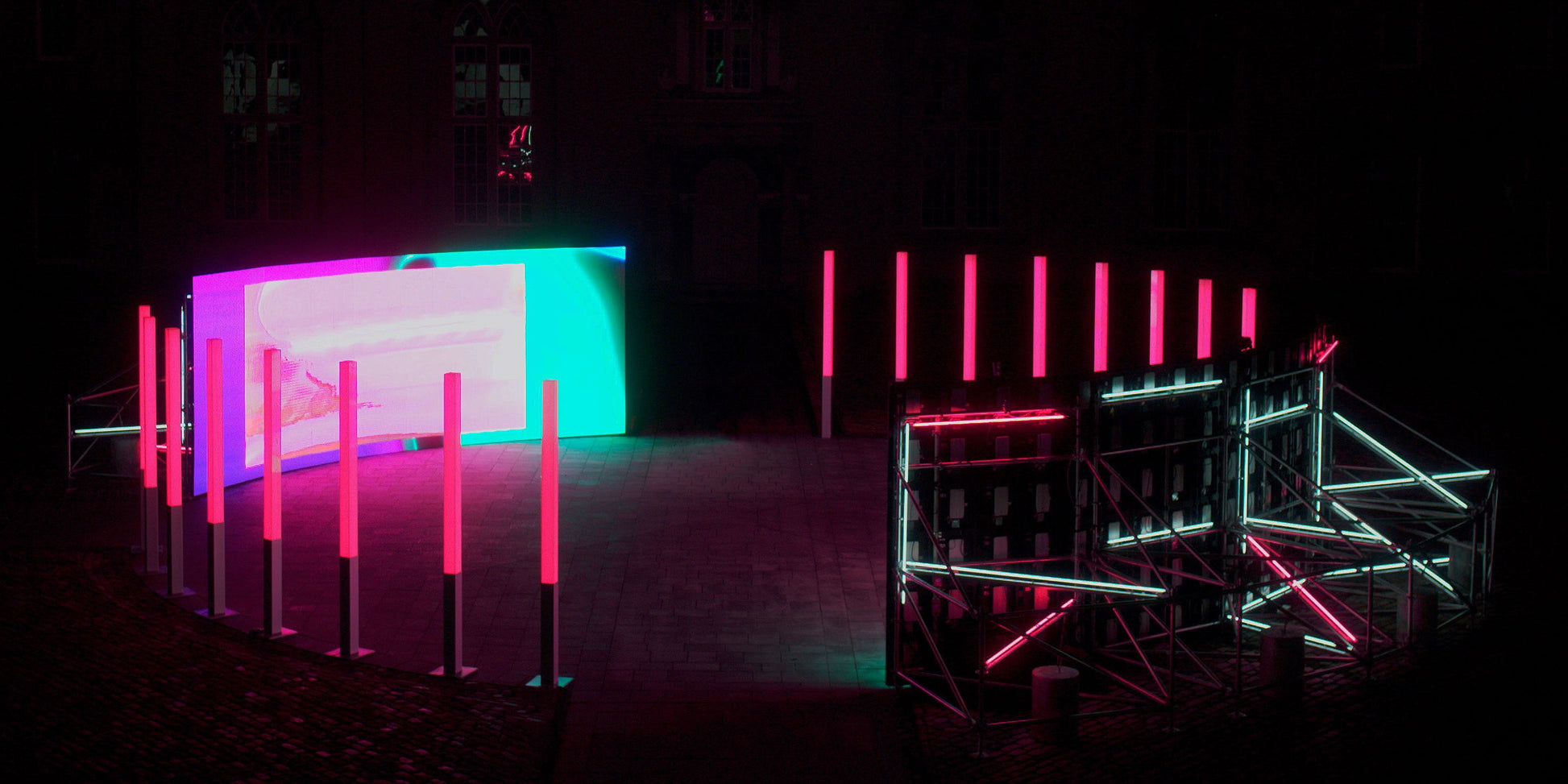 Digital installation artist, Aoife Dunne, creates large-scale immersive environments, fusing sculpture, video, sound, performance, technology, and costume. What bridges all of her multimodal works together is her interest in digital and material culture, illustrating continual references to the surreal and hyper-real. With a language that is rooted in post-pop and post-internet, Dunne’s work submerges audiences into phantasmagorical, detail-driven virtual and physical worlds.
