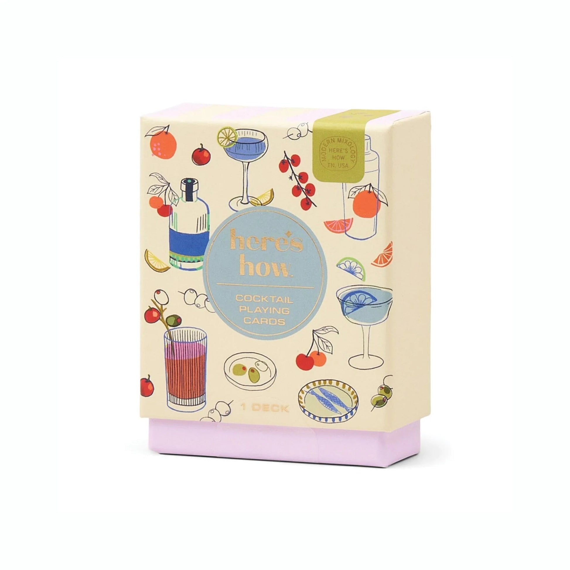 - Standard 52 card deck with playful cocktail-inspired designs