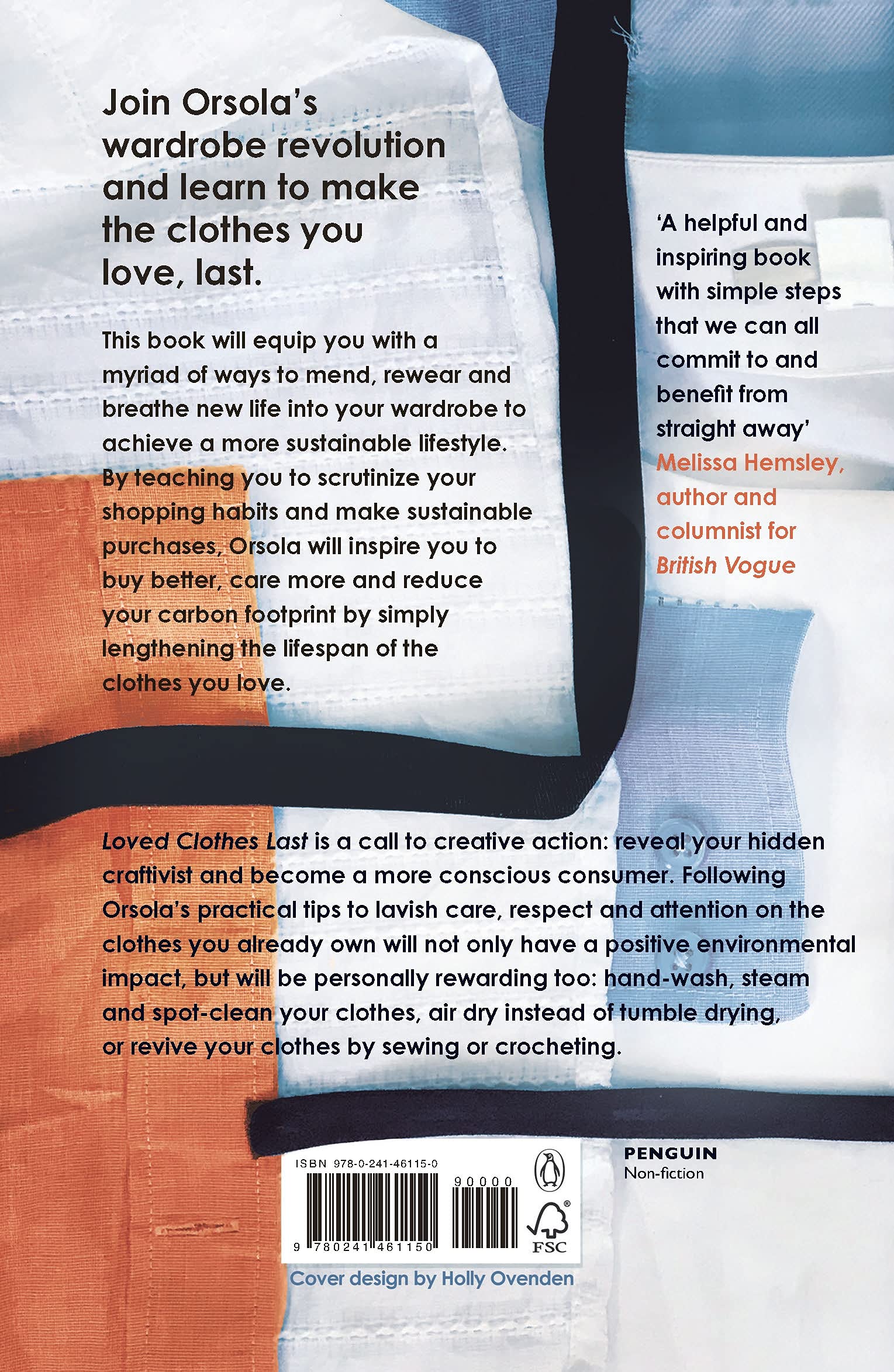 Following Orsola's practical tips to lavish care and attention on the clothes you already own will not only have a positive environmental impact, but will be personally rewarding too: hand wash, steam and spot clean your clothes, air dry instead of tumble drying, or revive your clothes by sewing or crocheting.