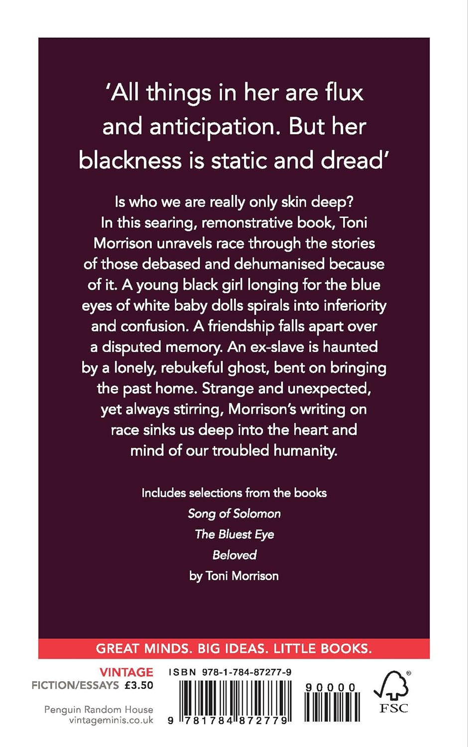 Is who we are really only skin deep? In this searing, remonstrative book, Toni Morrison unravels race through the stories of those debased and dehumanised because of it. A young black girl longing for the blue eyes of white baby dolls spirals into inferiority and confusion. A friendship falls apart over a disputed memory. An ex-slave is haunted by a lonely, rebukeful ghost, bent on bringing their past home. Strange and unexpected, yet always stirring, Morrison’s writing on race sinks us deep into the heart and mind of our troubled humanity.