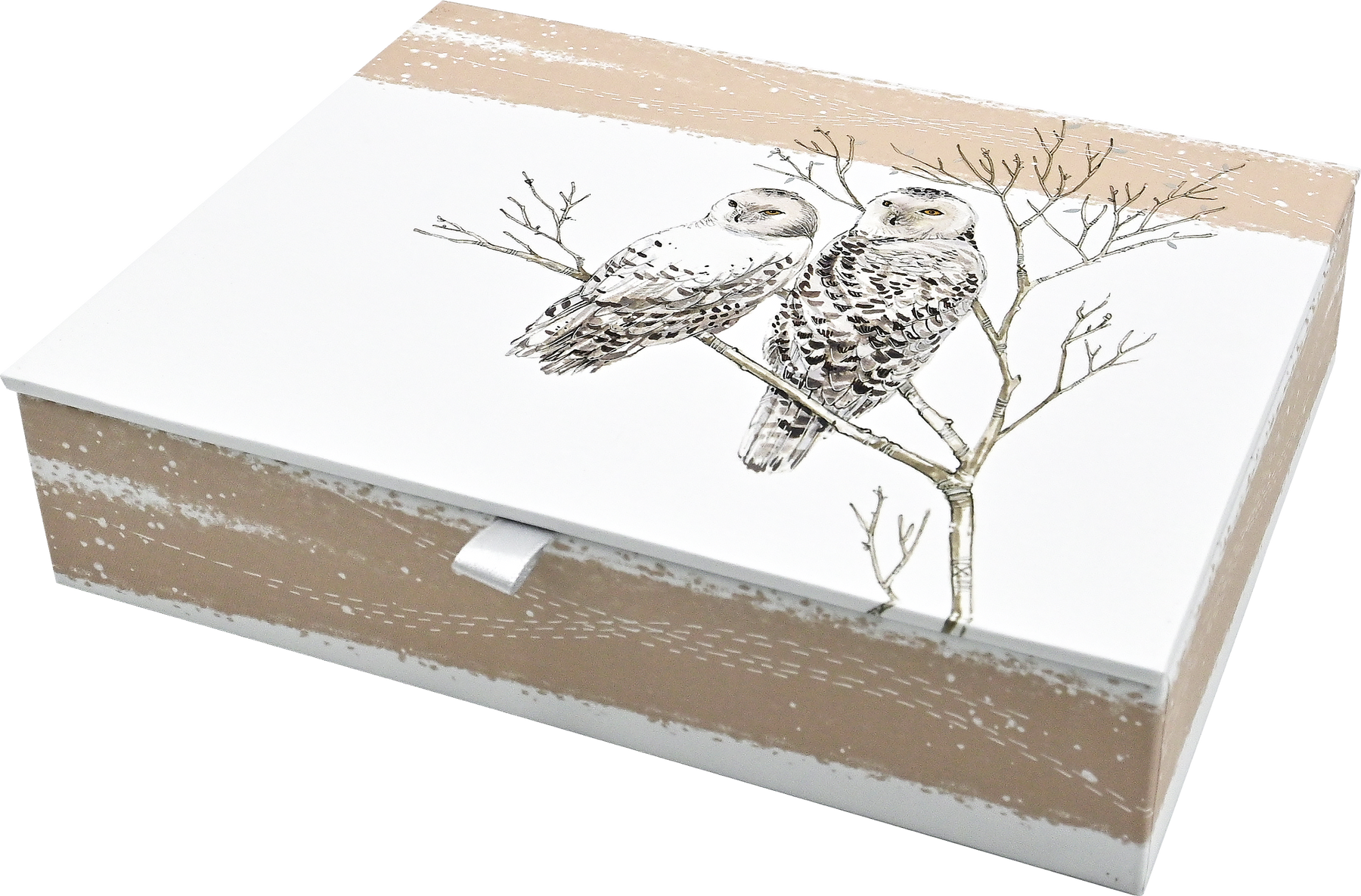 - Sturdy reusable box features a reproduction of the card design on the lid. A smaller image is replicated inside.