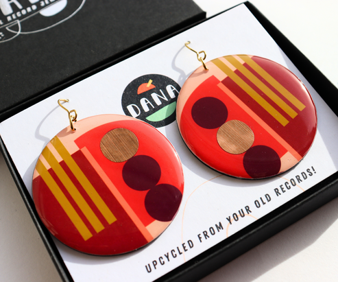DANA jewellery designs are made using unwanted and beat up vinyl records saved from ending up in landfill. Rubbish has never looked better.