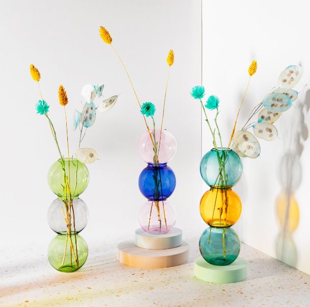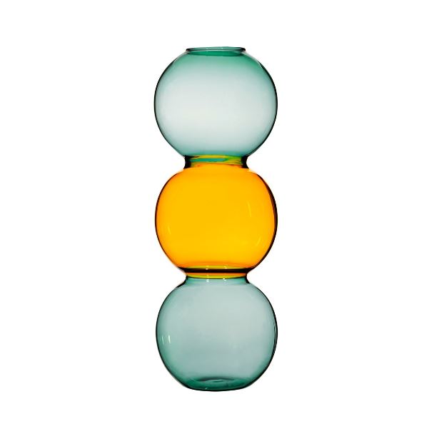 Sass & Belle's Triple Bubble Vase will brighten up your home. Made in the style of our Bohemian Home collection, this vase has been crafted from borosilicate glass and features a colourway option of grey and olive or turquoise and yellow. Designed for inside the home, this vase is perfect for displaying fresh or dried flowers.