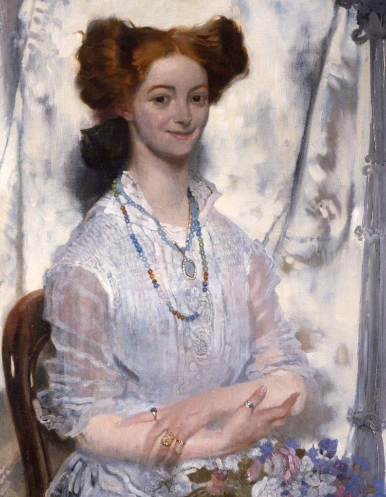 The portrait depicts Grace Clifford Plunkett, who was a student under Orpen at the Dublin Metropolitan School of Art between 1904 and 1907. Irish and global events took both student and teacher on separate paths. Orpen became a prolific war artist and would capture the horrors of the Somme during 1916/1917. Grace became a political caricature artist, and was involved with Joseph Plunkett and the rising during Easter 1916. Grace famously married Plunkett in Kilmainham Gaol, just hours before his execution.